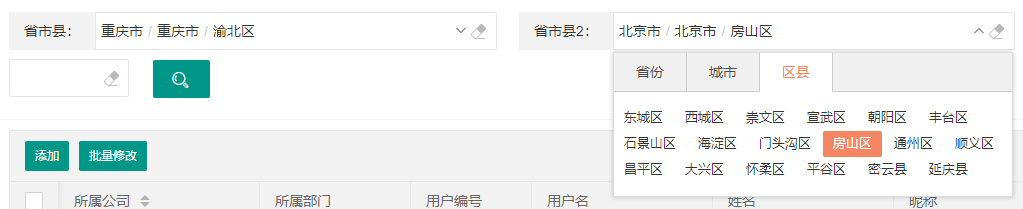 省市区联动选择,目前最完美的。 2018-12-05 优化设置默认值的方法,重新下载覆盖原文件, 2018-12-13 修复可以使用多个选择的bug