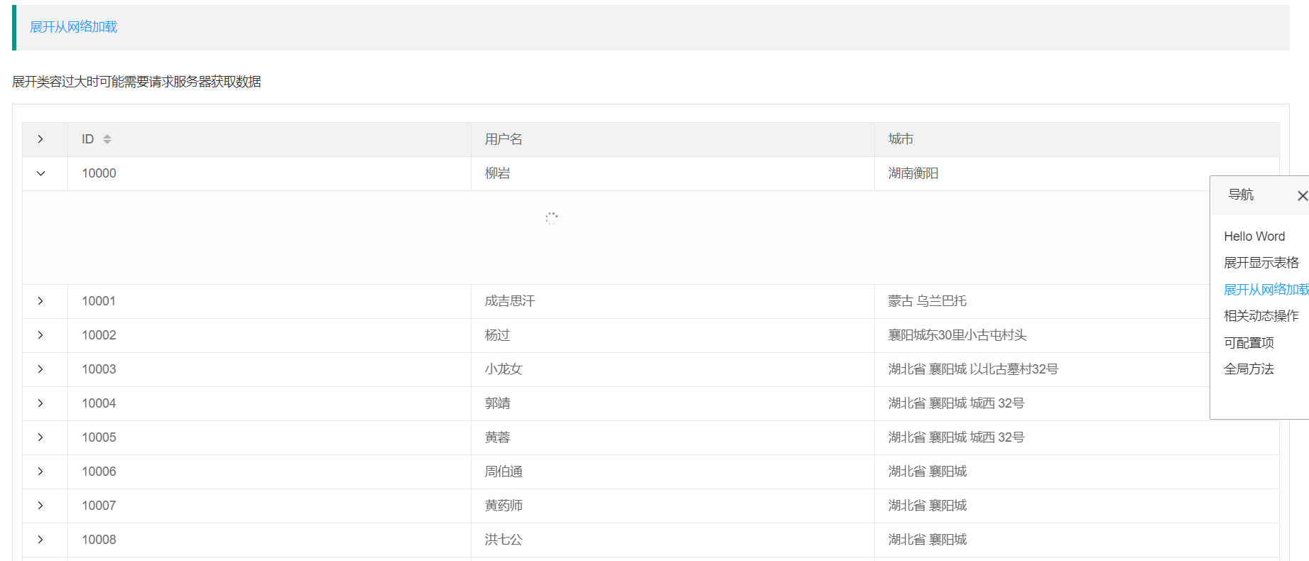 展开区域内容从网络加载