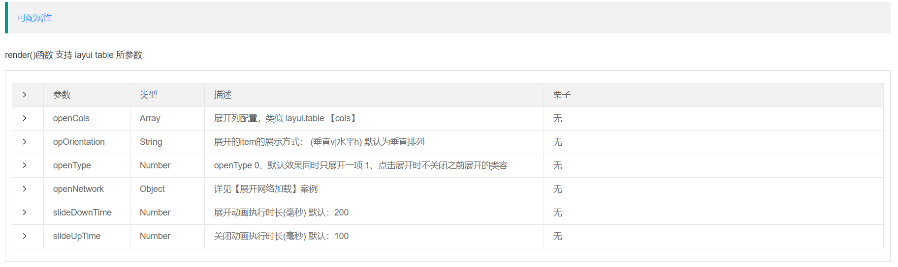 // 展开的列配置