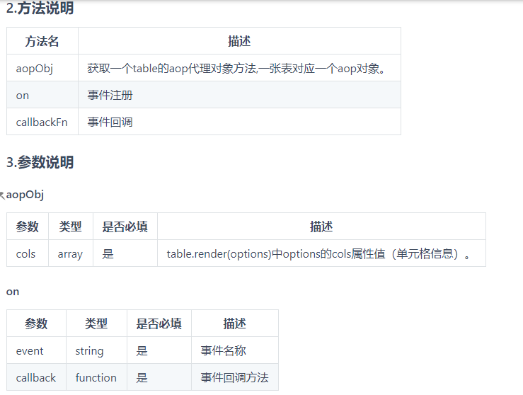 * 1、 aopTable.on('tool(xxx)',function (obj) {})