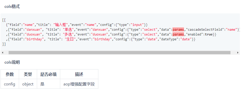,{field:'xlkjl', title: '下拉框联动(上级)',width:150,event:'xlkjl',config:{type:'select',data:params,cascadeSelectField:'xialaxiaji'},templet:function (d) {