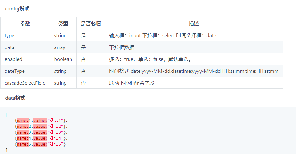 //type的类型值:select(下拉框)date(时间选择框)input(输入框)