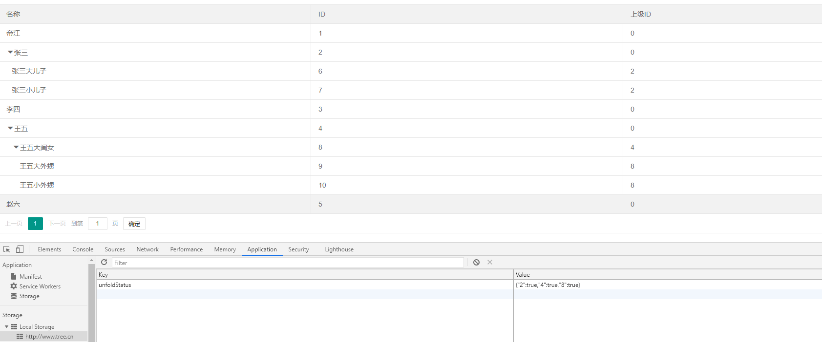 showCache | 这里就要好好说说了.该字段表示数据展开折叠缓存.刷新时候可以保留上次的展开状态 a).如果传false表示不使用缓存.此时渲染完成的状态为全部折叠; b).如果传true.会把操作过程中的展开折叠状态记录到 localStorage 中.key为 unfoldStatus; c).可以传一个字符串.这时候与传true类似,区别是 localStorage 的 key 为传入的字符串.建议传字符串.可以有效避免多个页面之间的冲突. | false | unfoldStatus |